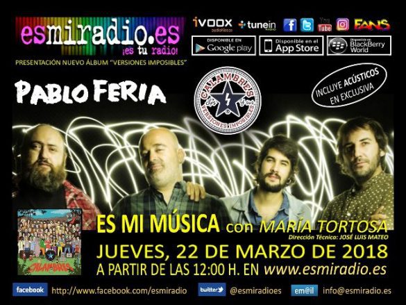 Bookmark esmiradioNoticiasPróximos Invitados Pablo Feria y Calambres el Jueves, 22 de Marzo de 2018 en esmiradio.es por esmiradio 19/03/2018 por esmiradio 19/03/2018 1 minutos de lectura Leer más