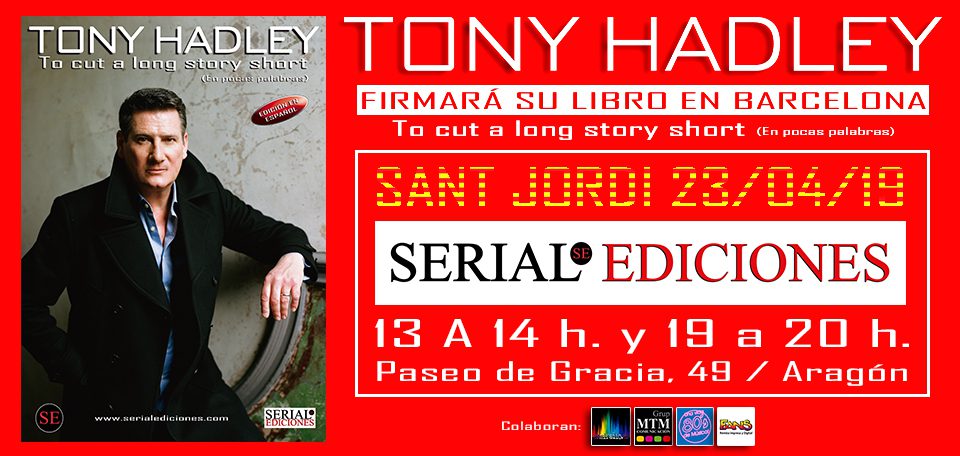 Tony Hadley firmará su libro «To cut a long story short» (En pocas palabras) en Sant Jordi 2019 (23 de Abril de 2019) y más concretamente en el sitio de Serial Ediciones – GrupMTM Comunicación (Paseo de Gracia, 49 / Aragón). Tony estará firmando libros por la mañana de 13 a 14 h. y por la tarde de 19 a 20 h.